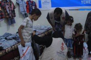 الجمعية تنفذ مشروع الكسوة لعدد ١٠٠ طفل وطفلة من أسر نازحي محافظة الحديدة