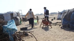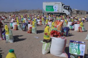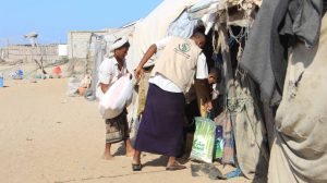 وزعت الجمعية سلال غذائية لعدد 100 أسرة من نازحي محافظة الحديدة في عدن – البريقا ومخيم رأس عمران