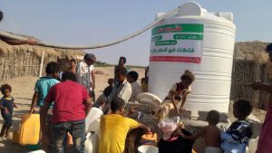 الجمعية تنفذ إمدادات مياه (408000 لتر ) لمخيمان النازحين في الخوخة خلال شهر رمضان المبارك